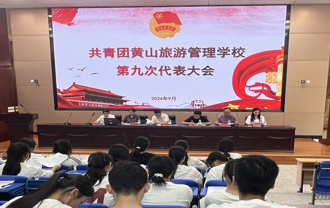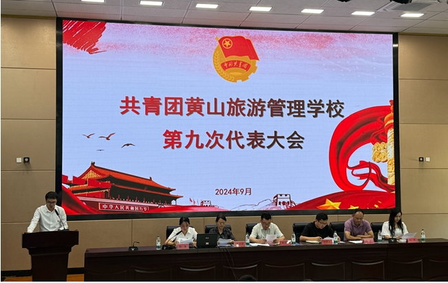 2024年9月29日上午,共青团黄山旅游管理学校第九次代表大会在学校大礼堂隆重召开。出席本次大会的领导和老师有黄山区团委副书记胡宗杰、黄山旅游管理学校党