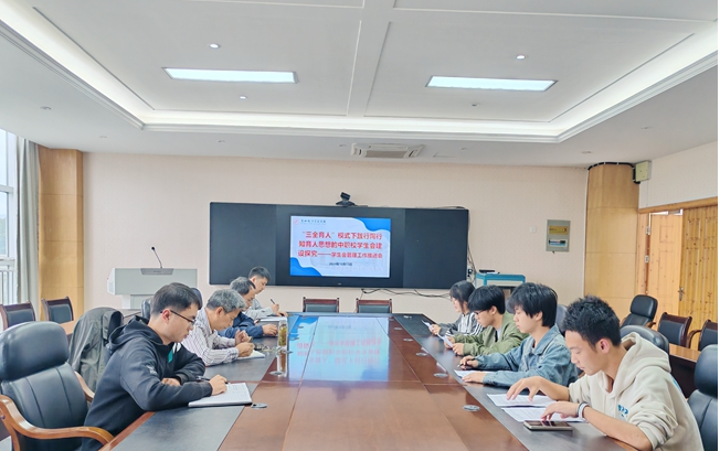 2024年10月15日下午.关于·三全育人‘模式下践行陶行知育人思想的中职校学生会建设探究,学生会干部素养提升与管理工作推进会在行政楼三楼会议室召开。黄山旅游管理学校副校长王锋、学生处主任张四保、校团委书记汪文谦、副书记袁志立、洪曾柔老师及学生会劳动部、纪检部等部门负责人参与了会议。本次会议由校团委书记汪文谦主持。