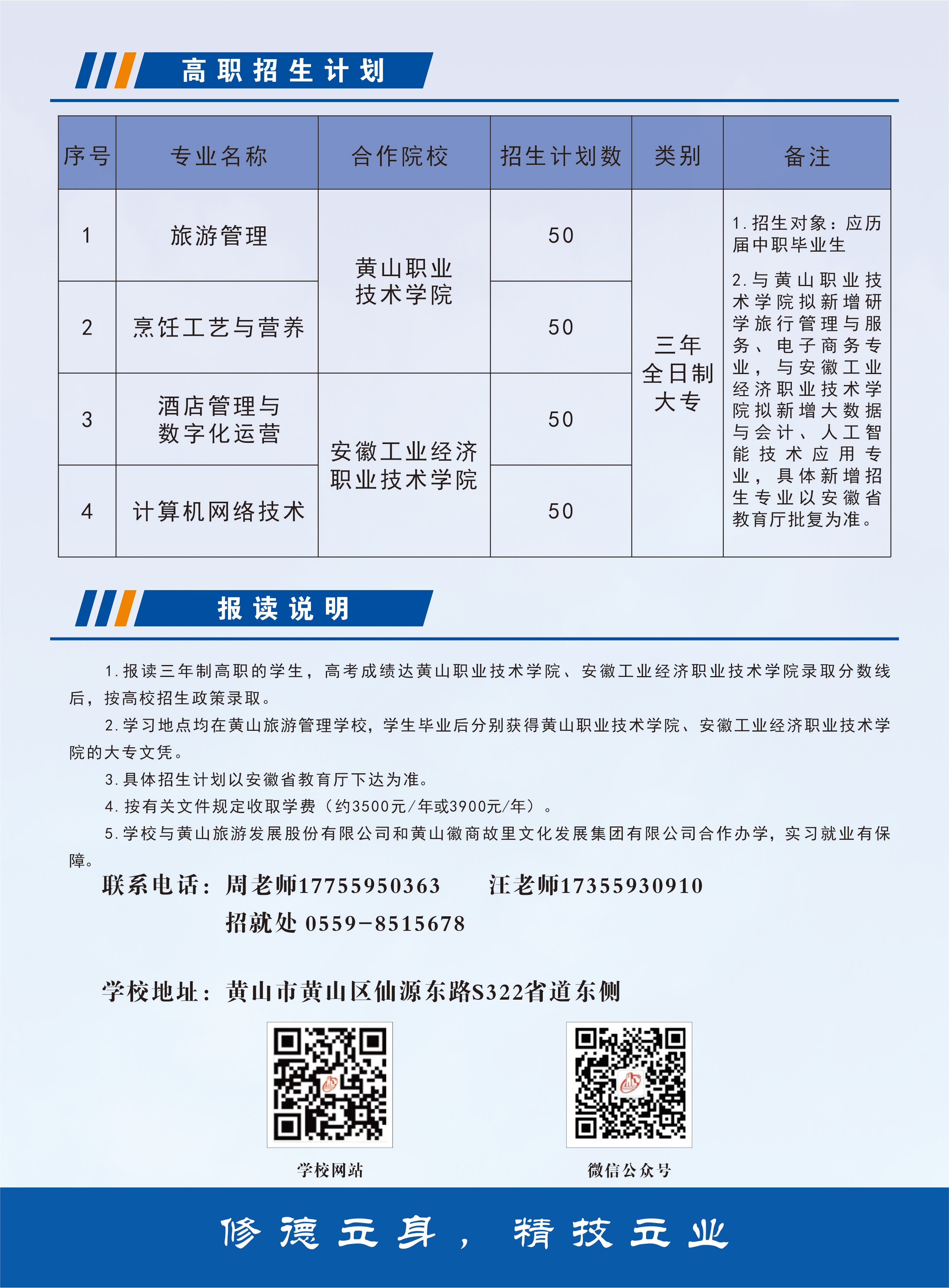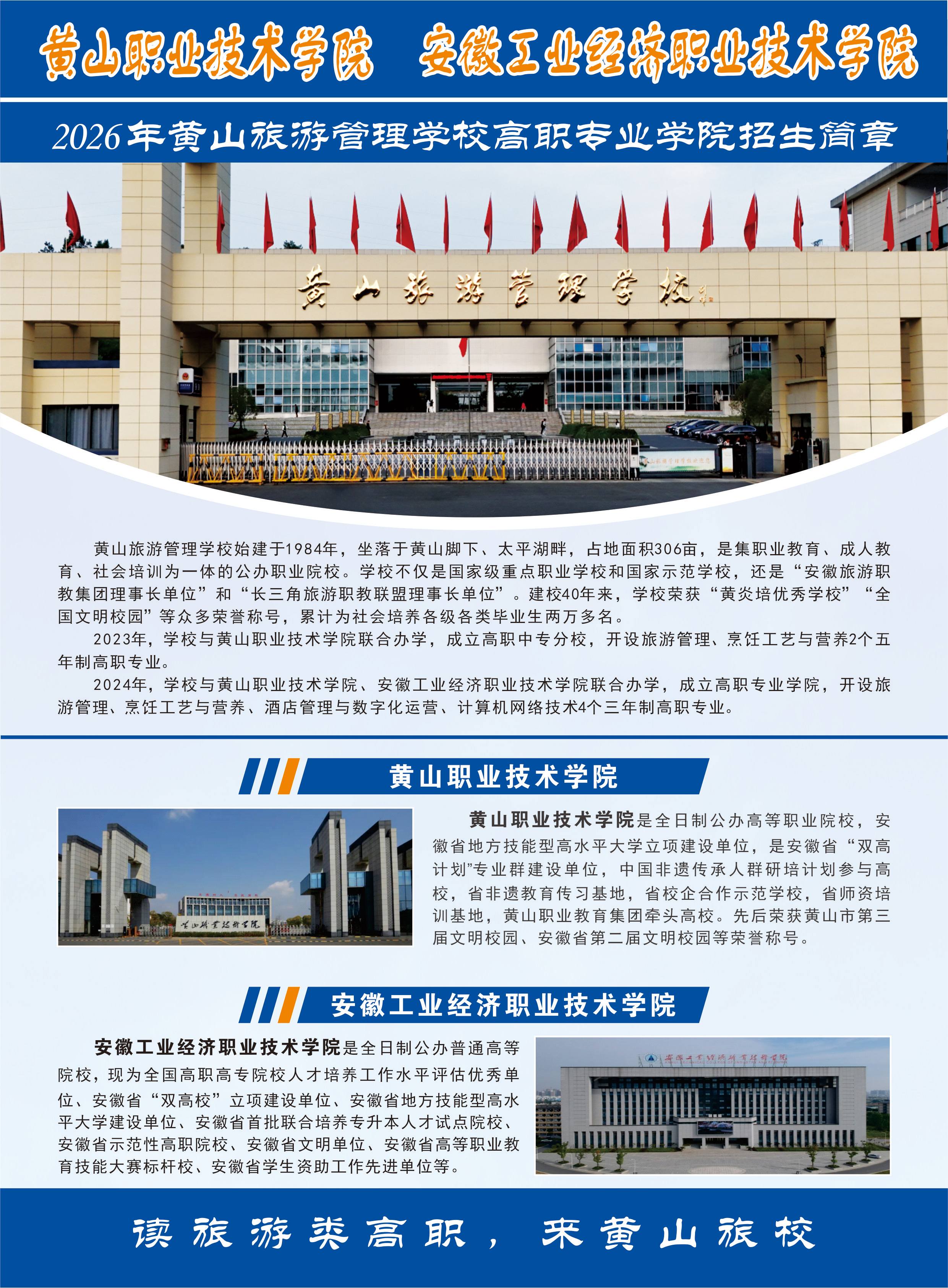 2026年黄山旅游管理学校高职专业学院招生简章、2026年黄山旅游管理学校春季招生简章
