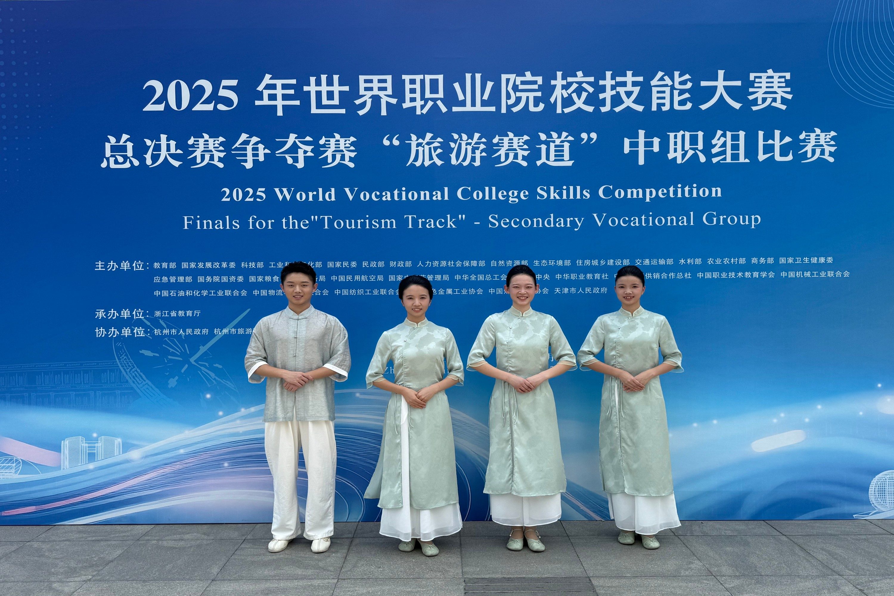 这三位同学的成长轨迹,是一路拼搏、不断突破的真实写照。从演说词的一遍遍推敲,到服务技能的反复打磨;从校内选拔的紧张备战,到世赛舞台上的从容绽放——朱梦媛、程木楠、王浩彬用一枚宝贵的银牌,为自己的中职生涯交上了完美答卷,也打开了通往本科院校的大门。他们的经历告诉每一位中职学子:技能过硬,同样前程似锦。